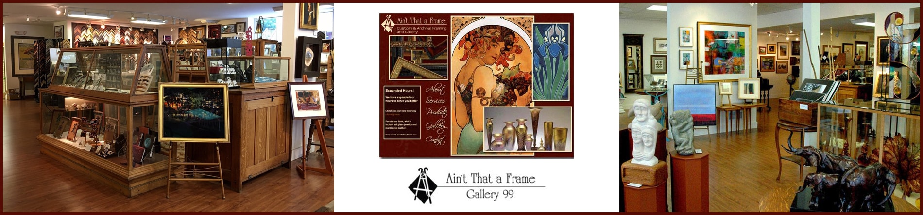 Our art gallery is a great place for previewing artwork on sale and art showings from local artists. To learn more about our framing services and art gallery space, or if you would like to find out more about what we can do for you, go ahead and contact us at Gallery 99- Ain't That a Frame today for more information.